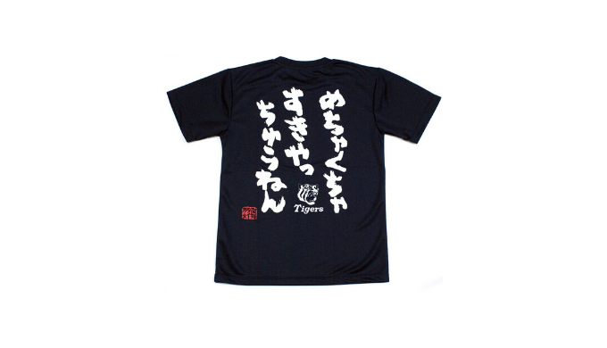 前には、小さくシンプルに阪神タイガースのロゴマークと「めちゃくちゃすきやっちゅうねん」というセリフがあります。